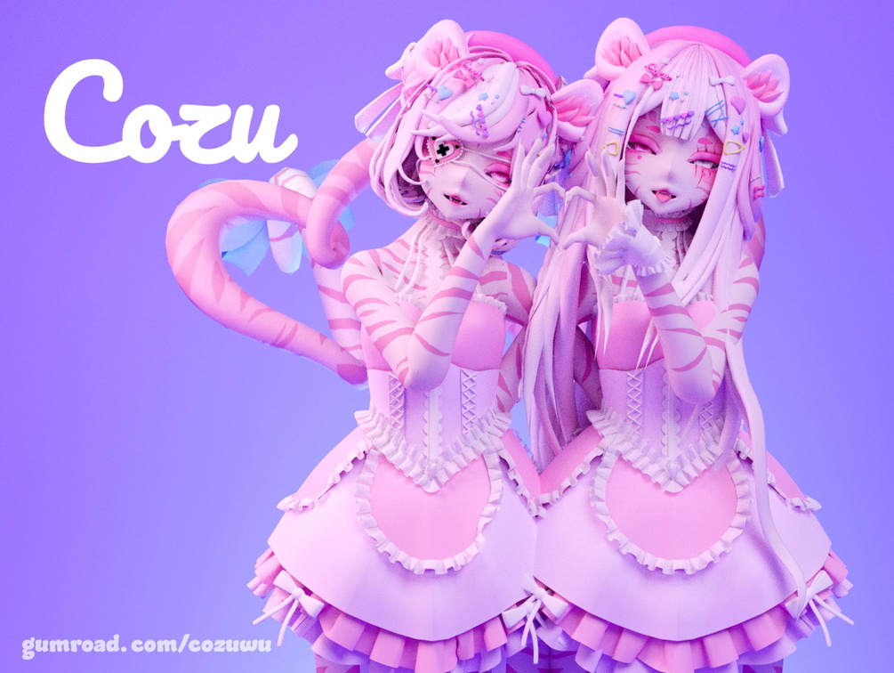 ◊ Hat, outfit, Ears, Eyepatch, Tiger Mask, Tiger Plush with walking animation, Hairpins, Gloves, Hair texture, icons, and any textures associated with these items by Cozu#1111 (that's me lolol)